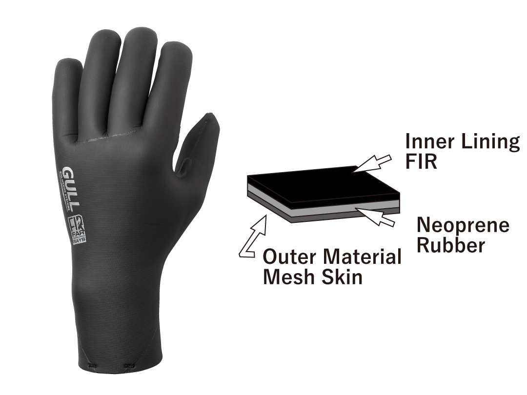 Skin Hot Gloves内衬有一层FIR(远红外线辐射)面料,使其2毫米的厚度具有出色的保暖性能。适用于水肺潜水以及在寒冷水域需要灵活手指动作的活动。